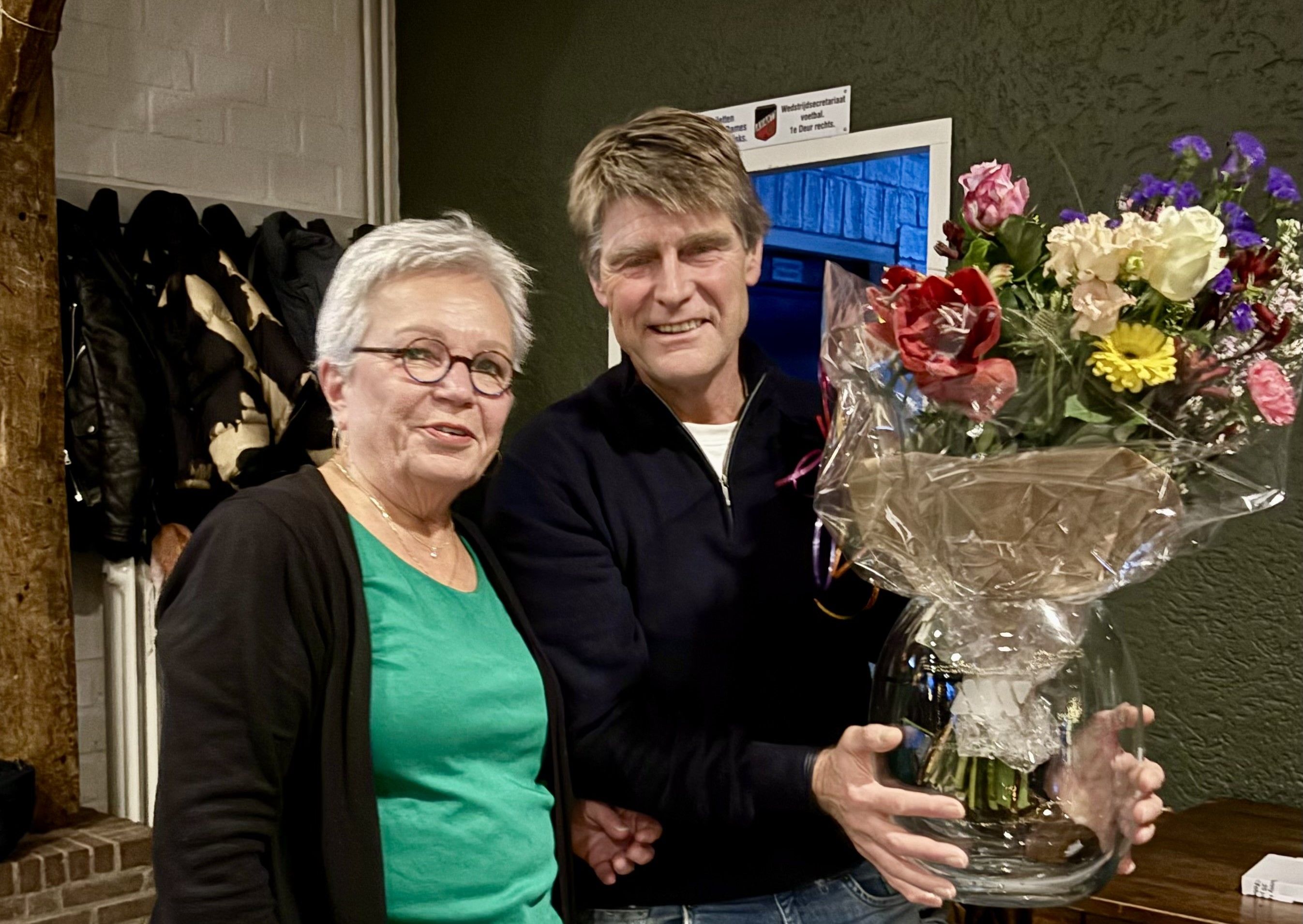 Algemeen voorzitter Barry Siero bedankte de aanwezige jubilarissen voor hun jarenlange lidmaatschap en overhandigde een aandenken en een mooi boeket bloemen.